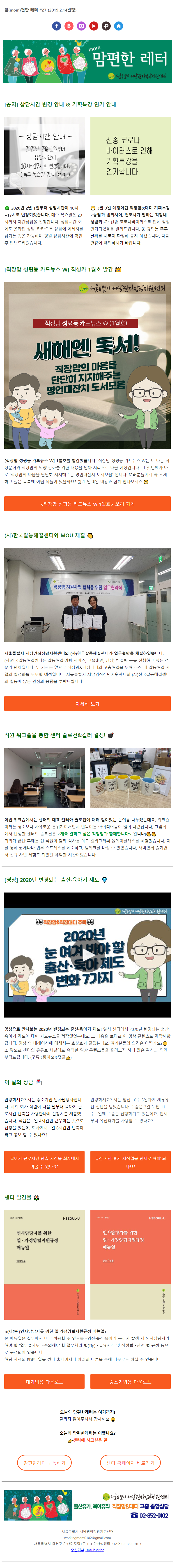 뉴스레터 No.27_2020년 2월 14일 / 상담시간 안내 및 직장맘 성평등 카드뉴스 등