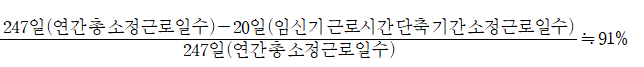 → 해당연도에 근로자의 임신기 근로시간 단축기간을 제외한 일수(247일-20일=227일)가