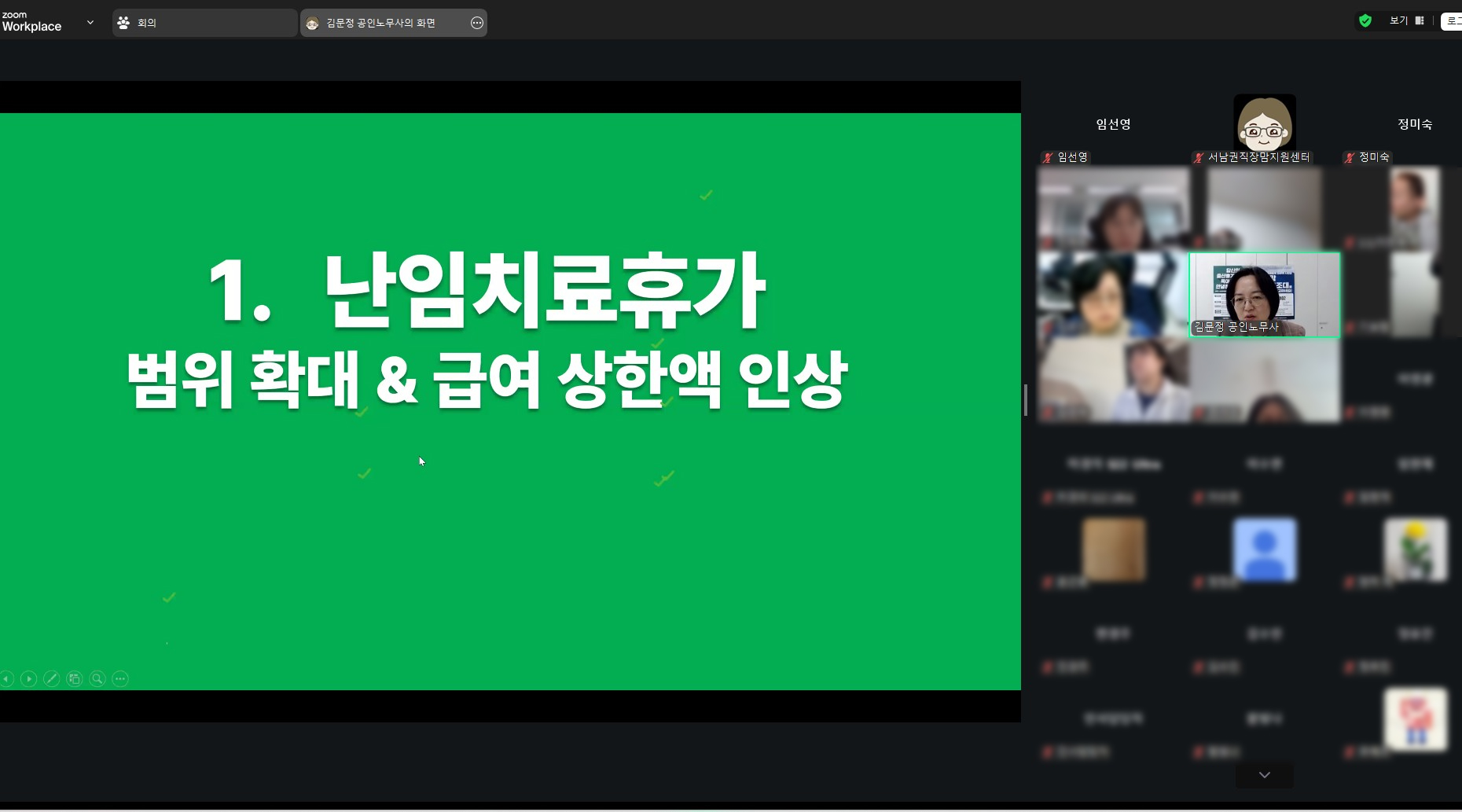 3월 5일 목요일, 점심시간을 활용해 온라인 개정법 특강을 김문정 공인노무사가 맡아 주셨으며,