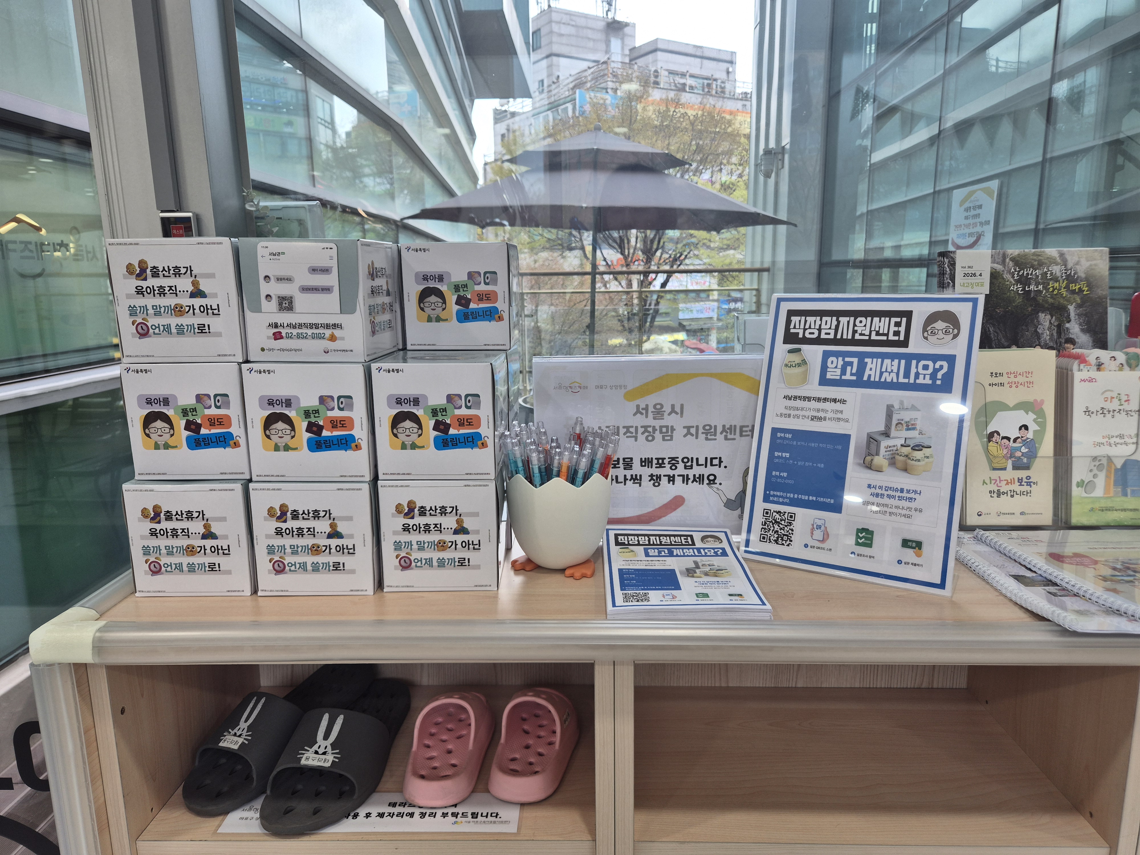 센터를 알리는 갑티슈와 리플릿을 비치하였습니다.