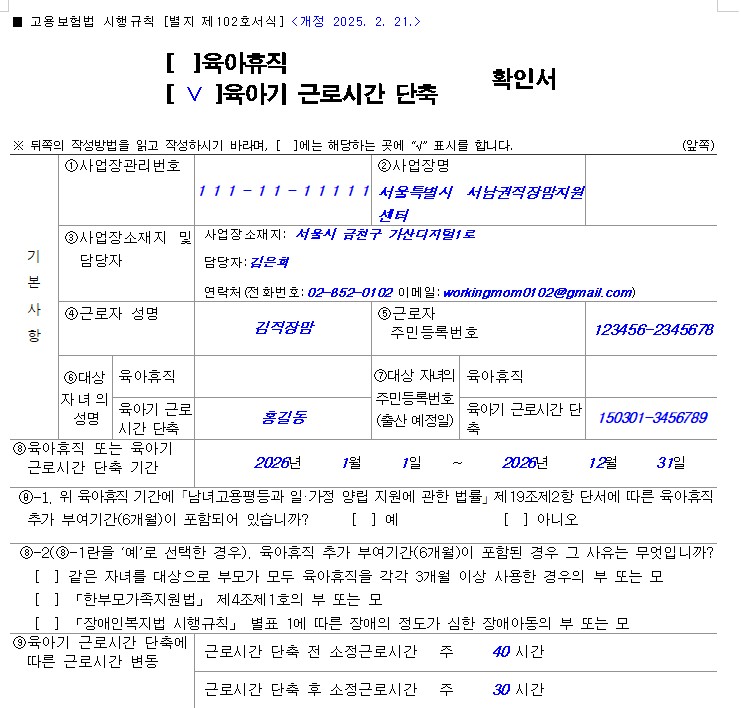 - 직원의 단축근무 서류를 받았는데, 맞게 처리하고 있는지 불안한 인사담당자
