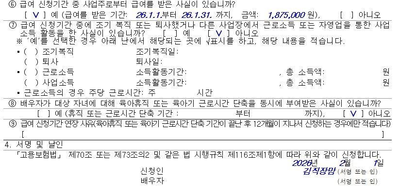 ※ 단축 중 소득활동은 부정수급과 연결될 수 있어 반드시 사실대로 적어야 합니다.