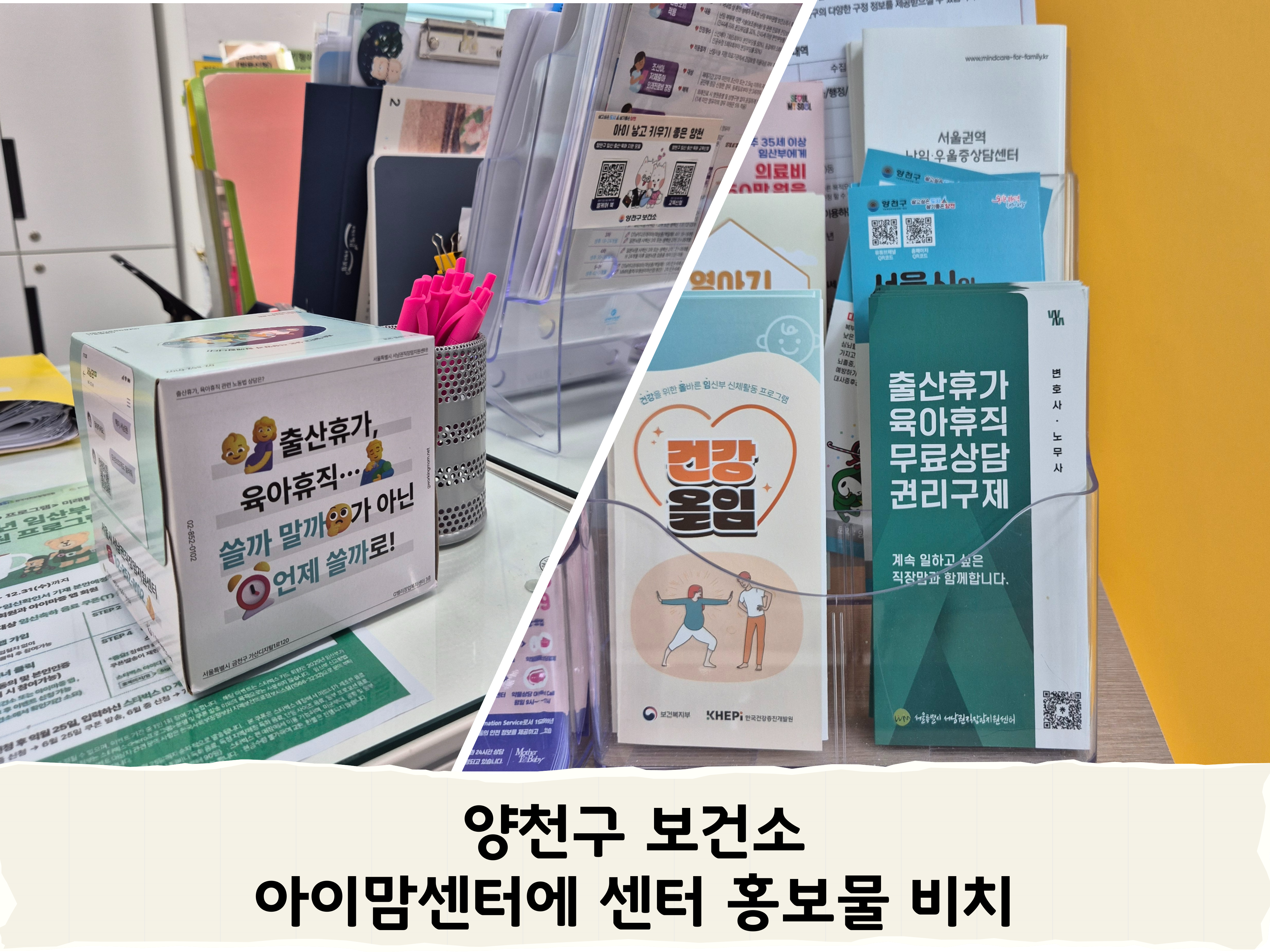 서남권직장맘지원센터에서는 양천구 보건소 아이맘센터 곳곳에 센터의 갑티슈 및 리플릿을 비치하였습니다.