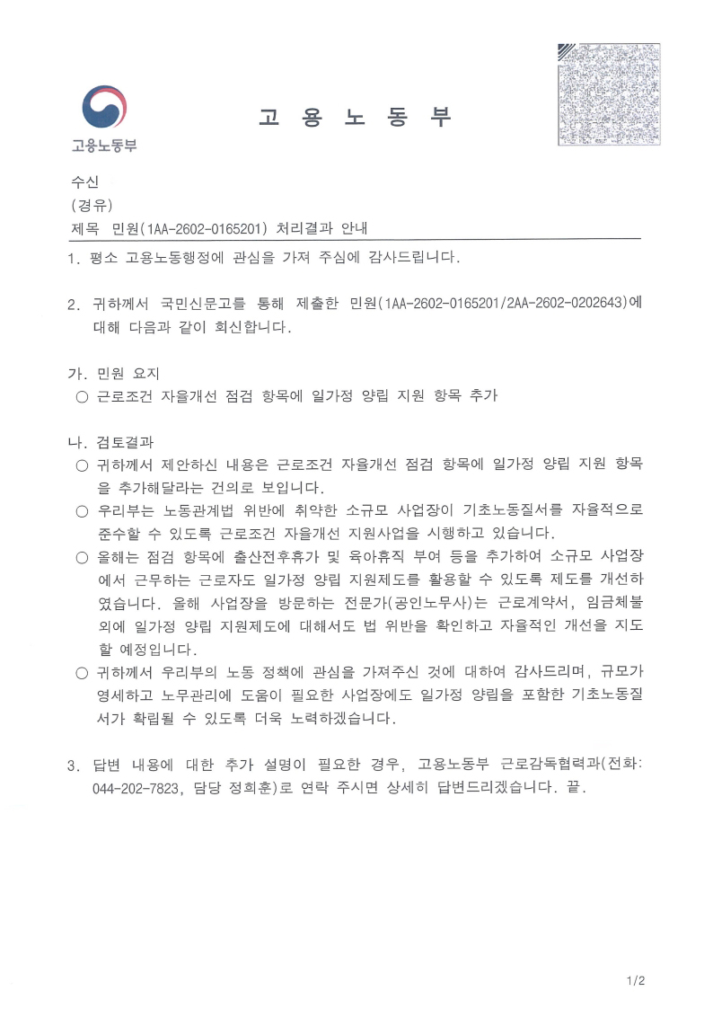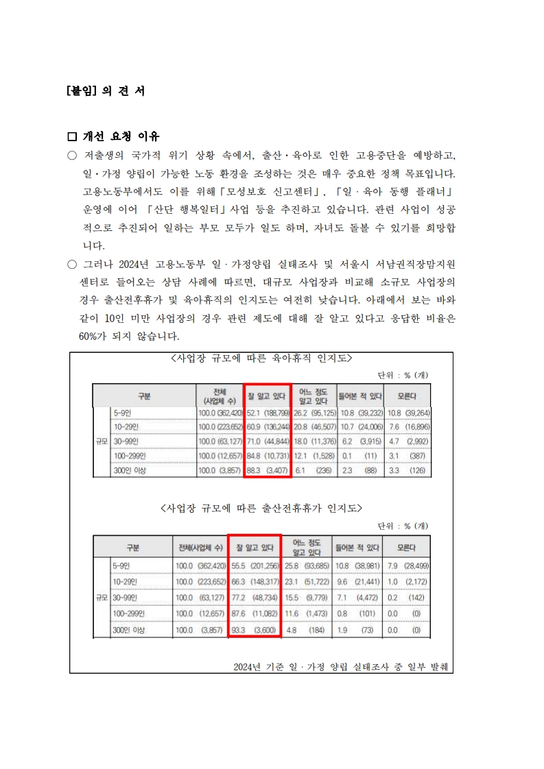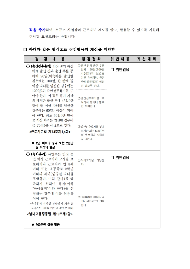 이에 따라 사업장 점검 시 일·가정 양립 제도의 운영 여부에 대해서도 함께 확인이 이루어질 예정입니다.