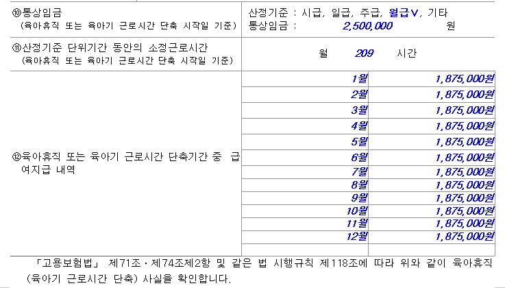 ※ 여기에 적는 금액은 단축이 시작되는 날을 기준으로 한 통상임금입니다.