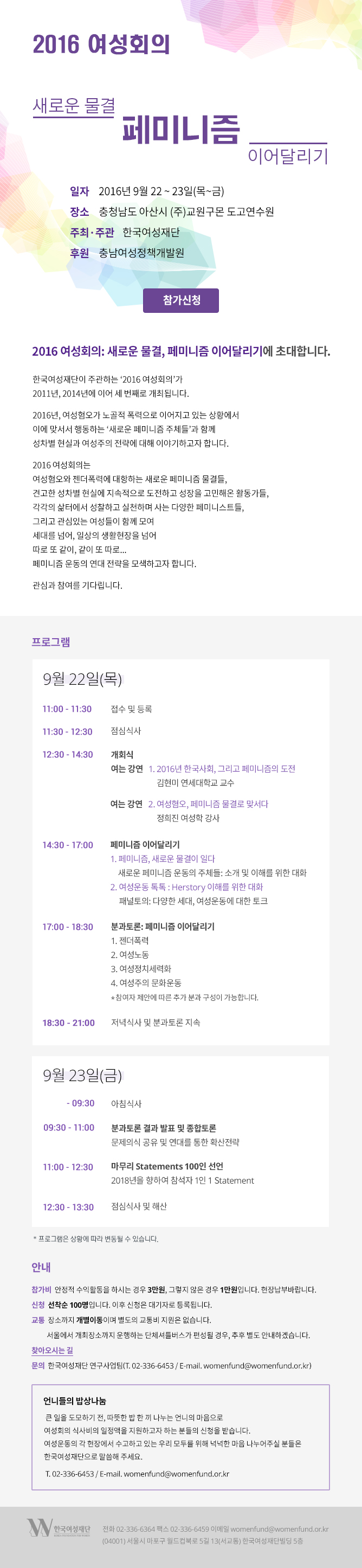 [한국여성재단] 2016 여성회의: 새로운 물결, 페미니즘 이어달리기