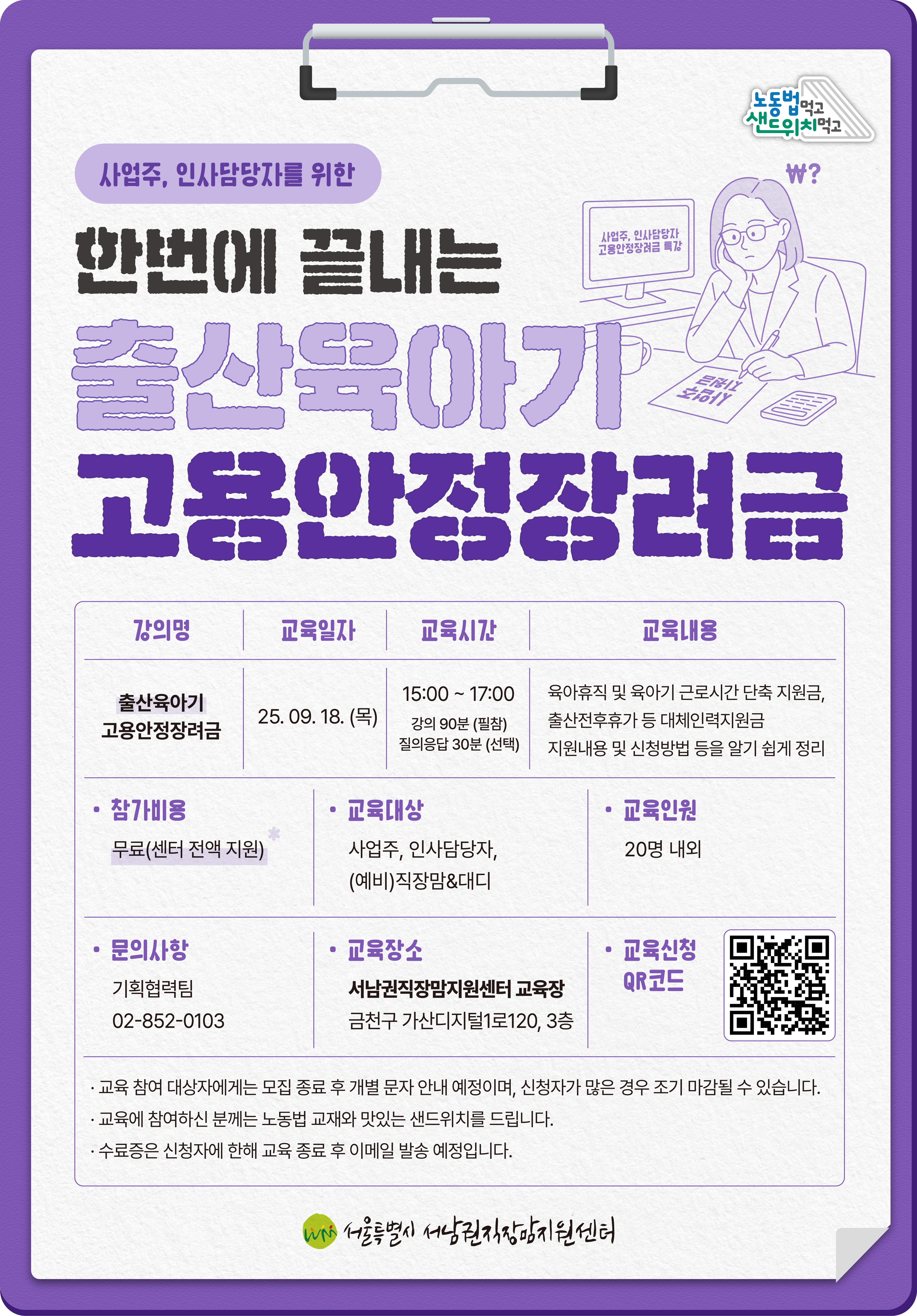 본 교육은 서남권직장맘지원센터 상근 노무사가 직접 진행합니다.👩🏫