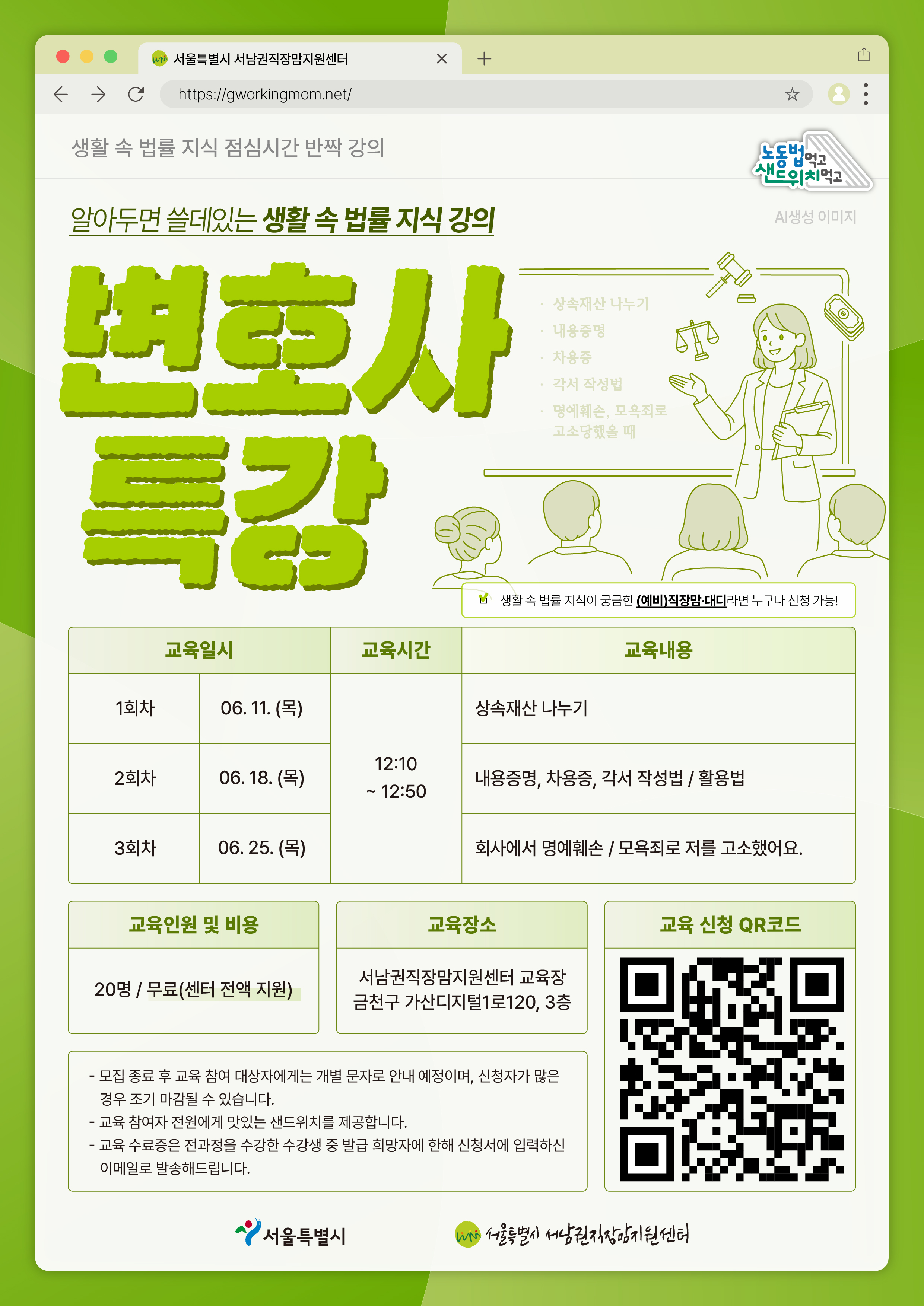 [직장맘&대디에게 도움되는 가벼운 법률지식 시리즈_ 변호사 특강] 교육생 모집